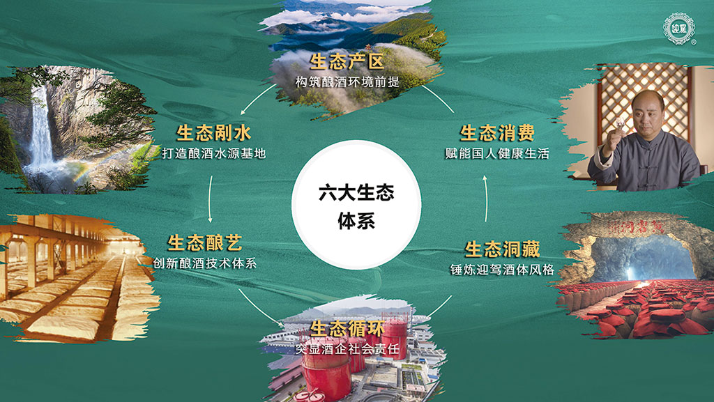 一是創(chuàng)新“六大生態(tài)”體系。生態(tài)產(chǎn)區(qū)——通過(guò)白酒產(chǎn)區(qū)建設(shè),構(gòu)筑釀酒環(huán)境前提,產(chǎn)區(qū)霍山榮獲“世界美酒特色產(chǎn)區(qū)”;生態(tài)剮水——立足優(yōu)質(zhì)釀酒水源,打造水源基地,佛子嶺水庫(kù)成功入選“中國(guó)好水”水源地;生態(tài)釀藝——秉承“非遺”多糧傳統(tǒng)工藝,創(chuàng)新釀酒技術(shù)體系,6次榮獲“中國(guó)白酒酒體設(shè)計(jì)獎(jiǎng)”;生態(tài)循環(huán)——踐行ESG理念,構(gòu)建企業(yè)可持續(xù)發(fā)展生態(tài),率先榮獲白酒行業(yè)國(guó)家級(jí)綠色工廠;生態(tài)洞藏——?jiǎng)?chuàng)新陳貯工藝,錘煉迎駕酒體風(fēng)格,形成了特有的“醉得慢、醒得快、有點(diǎn)甜”飲用品質(zhì)特征;生態(tài)消費(fèi)——倡導(dǎo)“少喝酒、喝好酒”,引導(dǎo)理性消費(fèi)、健康消費(fèi),為人民健康生活、幸福生活賦能。