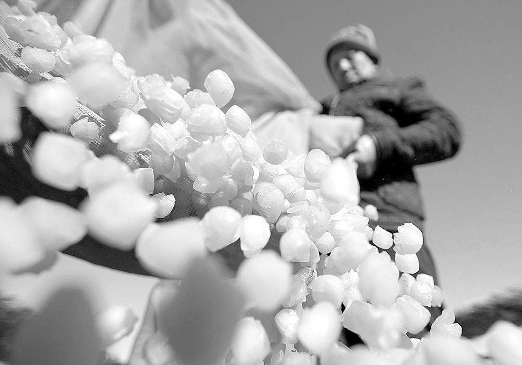 圖為近日,昌黎縣團(tuán)林鄉(xiāng)的扇貝養(yǎng)殖戶在將晾曬好的扇貝柱裝箱。楊世堯 攝