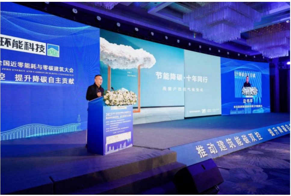 本次大會以【推動建筑能碳雙控 提升減碳自主貢獻】為主題展開,中國建筑節(jié)能協(xié)會副會長倪江波為大會致開幕詞。共邀請了7位資深專家作為主論壇發(fā)言嘉賓,同時設(shè)有10個主題分論壇,共有90位發(fā)言嘉賓分享他們在建筑領(lǐng)域的研究和實踐經(jīng)驗。在這樣一個高規(guī)格的論壇上,森鷹窗業(yè)以其深厚的行業(yè)實力和創(chuàng)新技術(shù),成為了大會上的一大亮點。