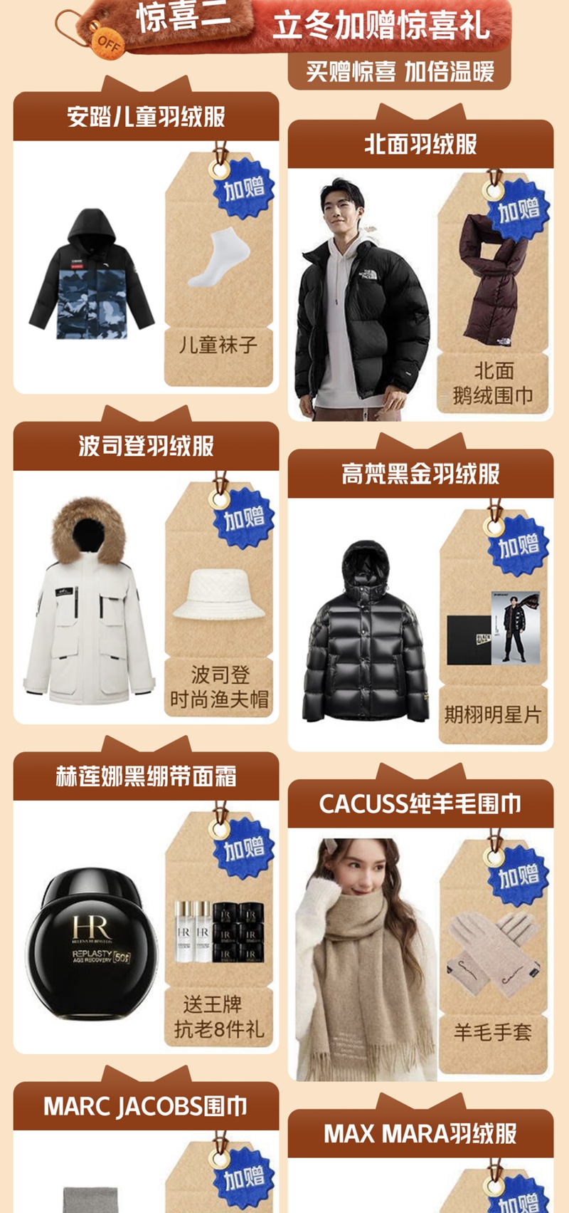 此外,京東服飾美妝還帶來百款爆品買贈驚喜,讓溫暖加倍。在活動會場購買部分保暖商品,即可獲得更多保暖好物贈禮,如MAX MARA 羽絨服加贈品牌同款徽標(biāo)毛氈包、北面保暖外套享北面鵝絨圍巾加贈禮、選購赫蓮娜黑繃帶面霜獲贈同品牌抗老8件禮……此外,羊毛襪、定制皮帶、真皮卡包、品類專享券等加贈好禮統(tǒng)統(tǒng)加碼,為冬季保暖體驗持續(xù)升溫。