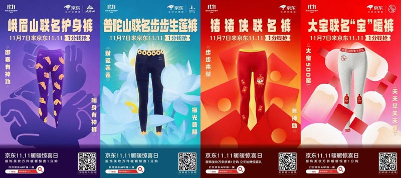 京東11.11暖暖驚喜日當(dāng)天,京東服飾美妝帶來萬條秋褲1分購,并聯(lián)合峨眉山、普陀山、豬豬俠 、大寶等品牌,分別推出峨眉山聯(lián)名護身褲、普陀山聯(lián)名步步生蓮褲、豬豬俠聯(lián)名褲、大寶聯(lián)名“寶”暖褲等四款特色聯(lián)名秋褲。秋褲設(shè)計融合文化元素與趣味風(fēng)格,既保障保暖功能,又以特色圖案傳遞美好寓意。11月7日全天,消費者可在10點、12點、14點、16點、18點、20點、22點等等多個整點將開啟搶購,1 分錢即有機會把聯(lián)名秋褲帶回家。
