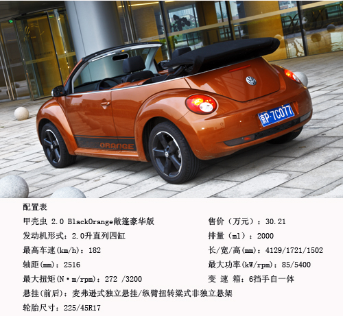 最后還是來(lái)說(shuō)說(shuō)甲殼蟲(chóng)的動(dòng)力系統(tǒng)吧,畢竟車(chē)還是用來(lái)開(kāi)的嘛。在我的記憶中,每次提起甲殼蟲(chóng)時(shí)似乎從來(lái)都沒(méi)有聽(tīng)見(jiàn)誰(shuí)討論過(guò)它的動(dòng)力性能??赡苁撬耐庑翁肆?,以至于讓人們已經(jīng)忽略了其它方面。墨橘版的甲殼蟲(chóng)為中國(guó)用戶(hù)提供2.0升4缸和1.8升渦輪增壓4缸發(fā)動(dòng)機(jī)兩種選擇。實(shí)話說(shuō),我們?cè)囻{的這款敞篷版搭載的2.0升發(fā)動(dòng)機(jī)動(dòng)力的確沒(méi)有驚人之處,每缸2氣門(mén)的技術(shù)有點(diǎn)落伍,最大功率85kW/5400rpm和172N·m/3200rpm的最大扭矩也顯得底氣有點(diǎn)不足。而實(shí)際表現(xiàn)也與數(shù)據(jù)顯示得比較相符,發(fā)動(dòng)機(jī)在頭段加速時(shí)并不會(huì)帶給我們太強(qiáng)悍的爆發(fā)力,當(dāng)轉(zhuǎn)速超過(guò)3000轉(zhuǎn)/分鐘時(shí),扭矩峰值已經(jīng)百分之百發(fā)揮出來(lái)了,后段的動(dòng)力輸出只能用平順來(lái)形容。不過(guò),對(duì)于普通的駕駛者和女性駕駛者來(lái)說(shuō),這種駕駛感覺(jué)沒(méi)有什么不妥,“蟲(chóng)子”堅(jiān)持要用它的溫和來(lái)歡迎所有喜歡它的人。6擋手自一體變速箱能夠?yàn)槲覀兲峁㏒擋和手動(dòng)換擋模式。切換到S擋模式后,發(fā)動(dòng)機(jī)會(huì)提高換擋轉(zhuǎn)速,發(fā)動(dòng)機(jī)響應(yīng)也更迅速,手動(dòng)換擋模式可以根據(jù)你的實(shí)際需求來(lái)決定在什么轉(zhuǎn)速下?lián)Q擋,雖然總體動(dòng)力的感覺(jué)并不是很強(qiáng),但變速箱還是可以為我們彌補(bǔ)這點(diǎn)小小的遺憾。