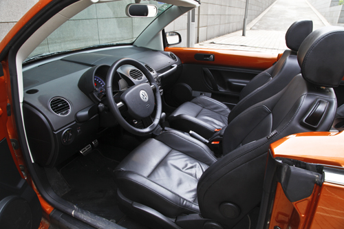 說(shuō)了半天,墨橘版的“蟲(chóng)子”跟普通的“蟲(chóng)子”相比,內(nèi)飾是否有一些不同呢?當(dāng)然有,比如三幅式方向盤(pán)的輻條,普通版甲殼蟲(chóng)的方向盤(pán)輻條是銀色的,而墨橘版的方向盤(pán)輻條則被噴上了黑色的鋼琴漆,跟整個(gè)內(nèi)飾非常搭配、協(xié)調(diào)。更重要的是,我們?cè)囻{的這款“墨橘”座椅也被升級(jí)為真皮運(yùn)動(dòng)座椅,具有很強(qiáng)的包裹性,在將車(chē)頂蓬打開(kāi)后,坐在這樣的座椅中,我們會(huì)具有更好的安全感。