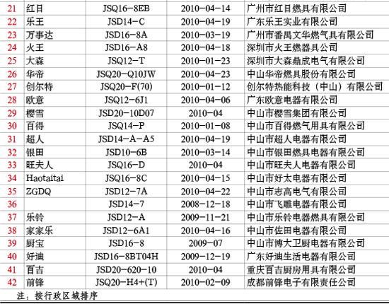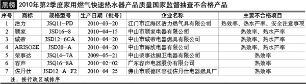 抽查范圍:上海、江蘇、浙江、山東、湖南、廣東、重慶、四川等8個(gè)省、直轄市49家企業(yè)生產(chǎn)的49種家用燃?xì)饪焖贌崴鳟a(chǎn)品