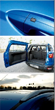 當(dāng)然,從后面看的感覺就不太一樣。站在側(cè)后方,翼搏飽滿的后部車身與車后外掛式備胎的組合,很有一只年輕氣盛的老虎盤踞山石上,即將一躍撲向獵物,虎虎聲威的氣勢,非常耐看。