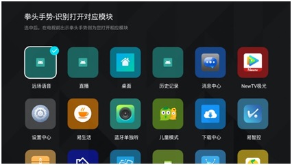 舉個很簡單的例子,累了一天的你,終于可以回到家看看自己喜歡的節(jié)目,你坐在沙發(fā)上,打開電視,通過光感識別,電視已自動為你調好了亮度;通過人臉識別,已根據(jù)你的觀影歷史,把新的更新內容呈現(xiàn)在你眼前,還有根據(jù)大數(shù)據(jù)系統(tǒng)特別為你準備的個性化推薦內容;你可以通過語音打開,也可以直接用“拳頭手勢”打開你想要的內容。