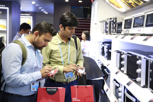 在廣州國際會展中心A區(qū)4.2號館格蘭仕展位上,一臺與物聯(lián)網(wǎng)冰箱交互的智能微蒸烤一體機特別受到各國采購商關(guān)注。
