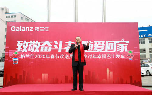 1月20日(臘月廿六)上午,格蘭仕舉行了“致敬奮斗者 隨愛回家”2020年春節(jié)歡送員工返鄉(xiāng)過年幸福大巴發(fā)車儀式,上千名格蘭仕一線員工及其家屬快樂踏上返鄉(xiāng)路。