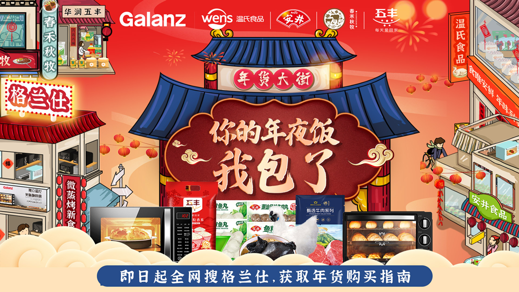 為了讓大家足不出戶購齊年貨,作為中國家電行業(yè)的知名品牌,格蘭仕攜手溫氏食品、春禾秋牧、華潤五豐、安井速凍等頭部食材品牌打造網(wǎng)上“年貨大街”場景,提供一站式線上購物體驗(yàn)。