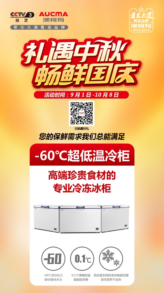 正逢金秋國(guó)慶小長(zhǎng)假,澳柯瑪攜手“暢鮮國(guó)慶”鉅惠活動(dòng)。專為國(guó)慶期間推出了多款重磅產(chǎn)品:其中家庭冷凍儲(chǔ)存的利器,澳柯瑪-60℃超低溫系列冷柜DW/BD-56W192HE、DW/BD-56W302HE、DW/BD-56W420HE,用鮮美肉香滋潤(rùn)秋天,為大家“貼秋膘”添一分助力。