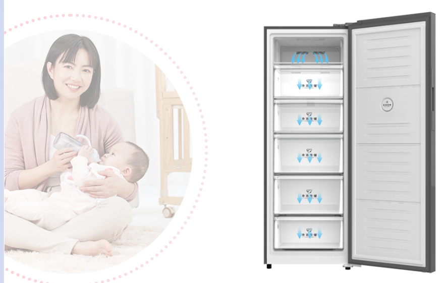 對(duì)初生寶寶而言,母乳是重要的第一口糧,儲(chǔ)存稍有不當(dāng)就會(huì)影響其營(yíng)養(yǎng)健康;擠出后的母乳需盡快在低溫條件下冷凍,制冷高效,溫度均勻,新鮮更有保障。澳柯瑪立式冷柜玲瓏系列BD-236WSPG,采用風(fēng)冷無(wú)霜技術(shù)打造純凈儲(chǔ)鮮空間,頂置蒸發(fā)機(jī)升級(jí)后背式蒸發(fā)器,多孔出風(fēng),層層受冷,保持柜內(nèi)溫度均勻,保障每一袋母乳的新鮮營(yíng)養(yǎng)。