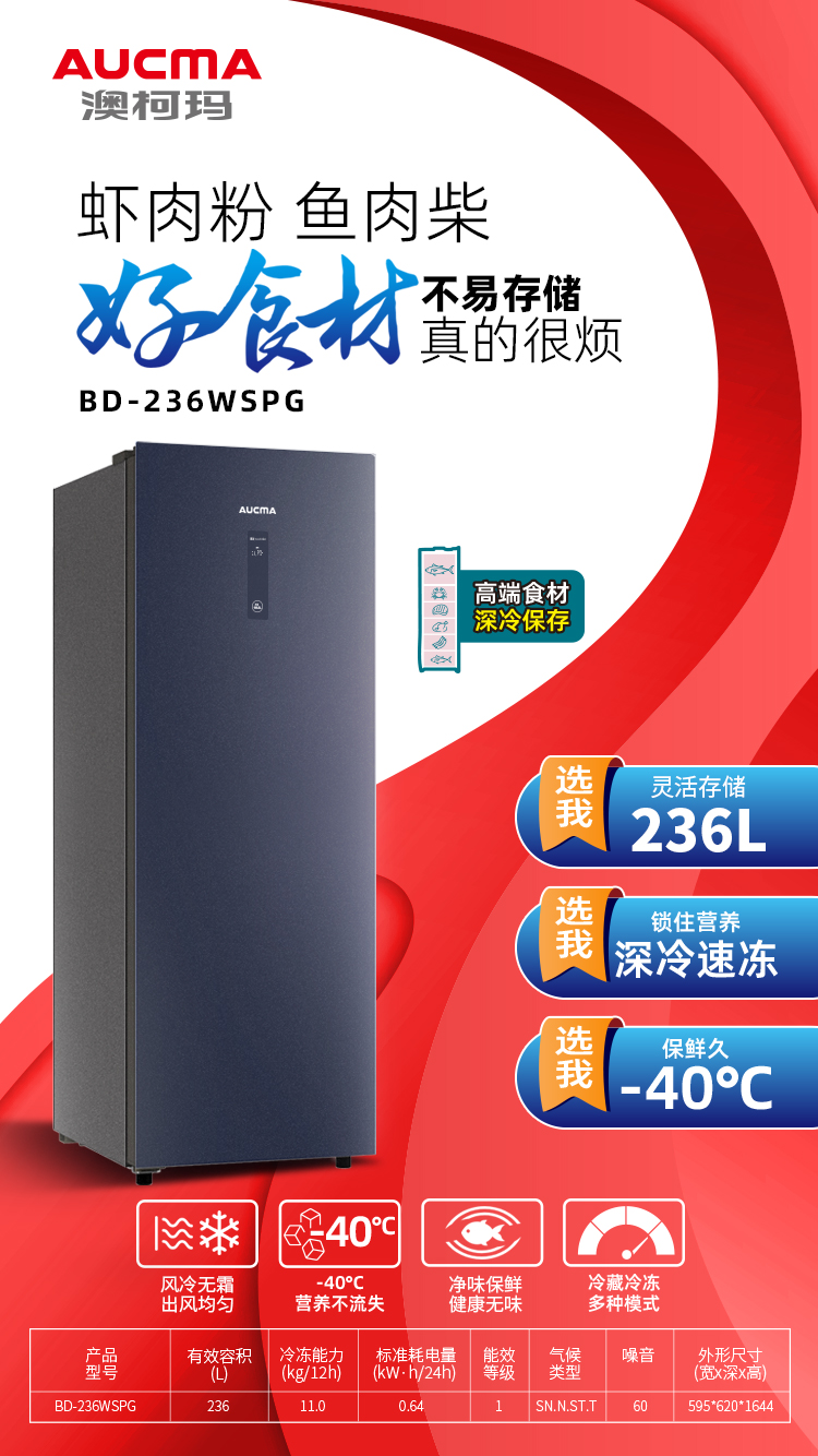 澳柯瑪BD-236WSPG立式風(fēng)冷冷柜,多維立體送風(fēng),真正實(shí)現(xiàn)零結(jié)霜。電腦智慧控溫,0.1℃精準(zhǔn)控溫,有效降低了溫度波動對食材的沖擊,還能更好保持新鮮口感。-40℃低溫也能進(jìn)一步抑制細(xì)胞活性,延長保鮮時(shí)間;并且占地面積僅有0.4㎡,實(shí)現(xiàn)了空間小、容量大的目標(biāo),解決了用戶囤貨不自由的痛點(diǎn),在為家庭食材儲備空間擴(kuò)容的前提下減少家居空間占用,使空間利用率得到進(jìn)一步提升。