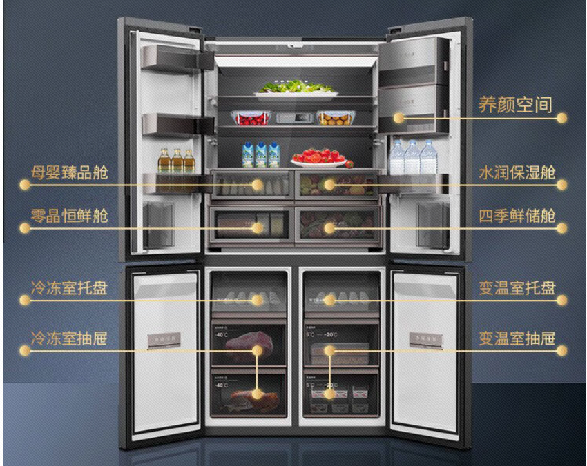 雙溫免解凍設(shè)計(jì),上下獨(dú)立寬溫區(qū),不同藏鮮不串味。上溫區(qū)是8℃~-20℃全變溫設(shè)計(jì):冷藏、0度、-7℃軟冷凍、冷凍溫度隨心控;下溫區(qū)-15℃~-24℃之間自由調(diào)節(jié),每度可調(diào),四季食材專溫呵護(hù),原產(chǎn)地般新鮮如初。