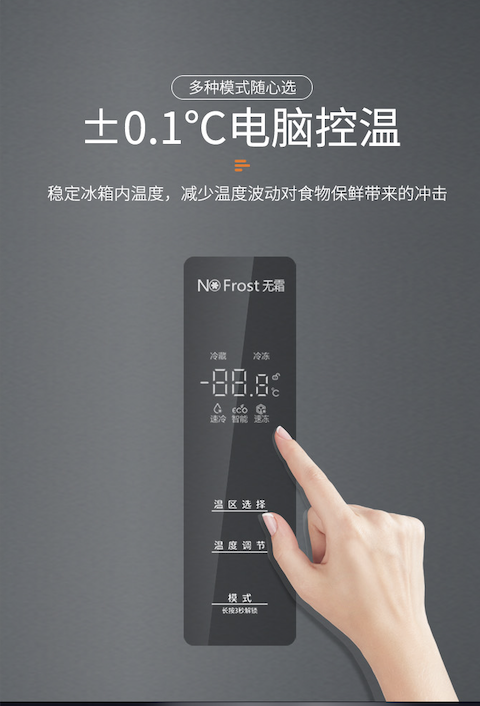 煙青色的面板選擇,更是這款冰箱的點睛之筆。這種面板不僅耐磨防滑耐油污,易于日常清潔與維護,大氣百搭的特性,輕松適配各種家居裝飾風格。無論是現(xiàn)代簡約、北歐風情還是中式古典,它都能成為家居環(huán)境中的一抹亮色,提升整體空間的品質(zhì)感。通過冰箱的智能溫控器,可根據(jù)食材需求進行各種溫度調(diào)節(jié)。0.1℃的精準調(diào)節(jié),最大限度降低溫度波動,確保每一份食物都能找到并保持新鮮度和口感。