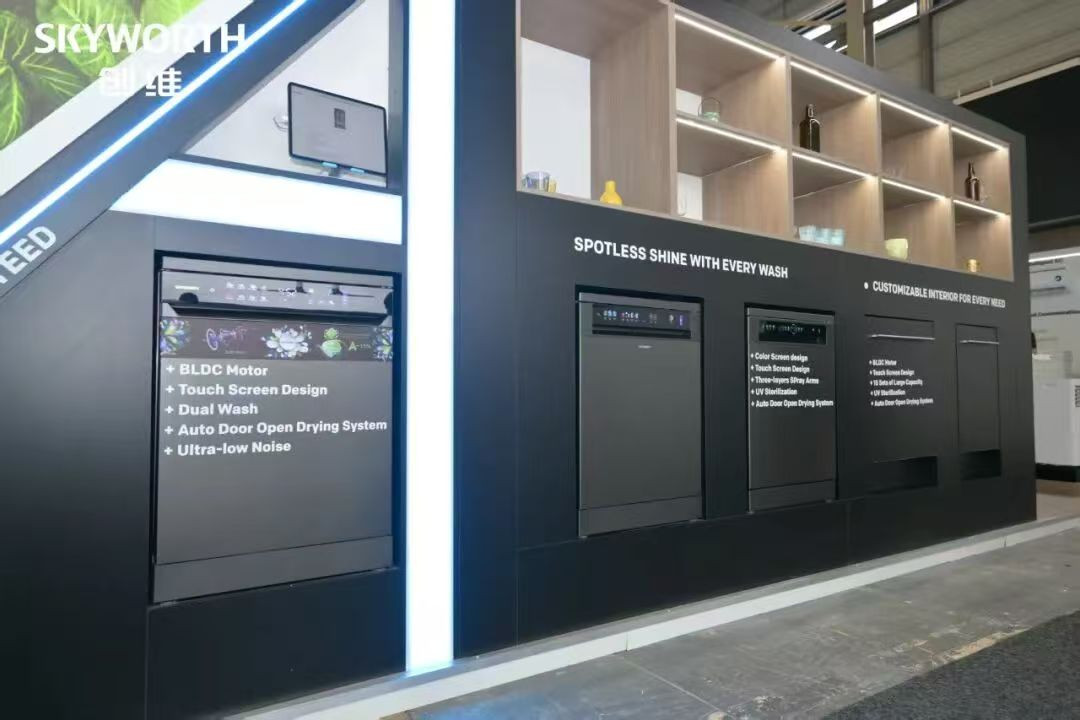 創(chuàng)維滾筒洗衣機(jī),展出產(chǎn)品配備彩色觸控屏,容量覆蓋6至12公斤,提供母嬰護(hù)理、快洗、輕柔等多種洗滌模式,并具備UV除菌、高溫殺菌、筒自潔等智能功能,全面覆蓋不同用戶需求。其中40cm超薄洗衣機(jī)尤其受到歐洲市場歡迎,成為當(dāng)季熱銷產(chǎn)品。