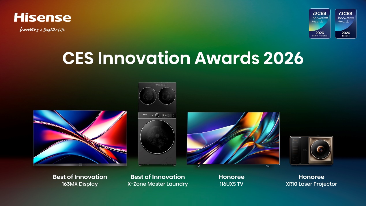 中國質(zhì)量新聞網(wǎng)訊(記者 朱文達(dá))在備受矚目的2026年國際消費電子展(CES)上,海信集團(tuán)控股股份有限公司(以下簡稱“海信”)憑借一系列突破性前沿技術(shù)創(chuàng)新,一舉斬獲四項CES創(chuàng)新獎項。從再次實現(xiàn)代際引領(lǐng)的全新一代RGB-Mini LED顯示技術(shù)到全球首款四基色Micro LED,再到全球首臺4合1熱泵洗烘一體機(jī),海信持續(xù)以全球首創(chuàng)技術(shù)定義行業(yè)標(biāo)桿。作為2026年世界杯官方贊助商,海信更在展會期間推出多款世界杯定制新品,用尖端科技點燃每一份熱愛。