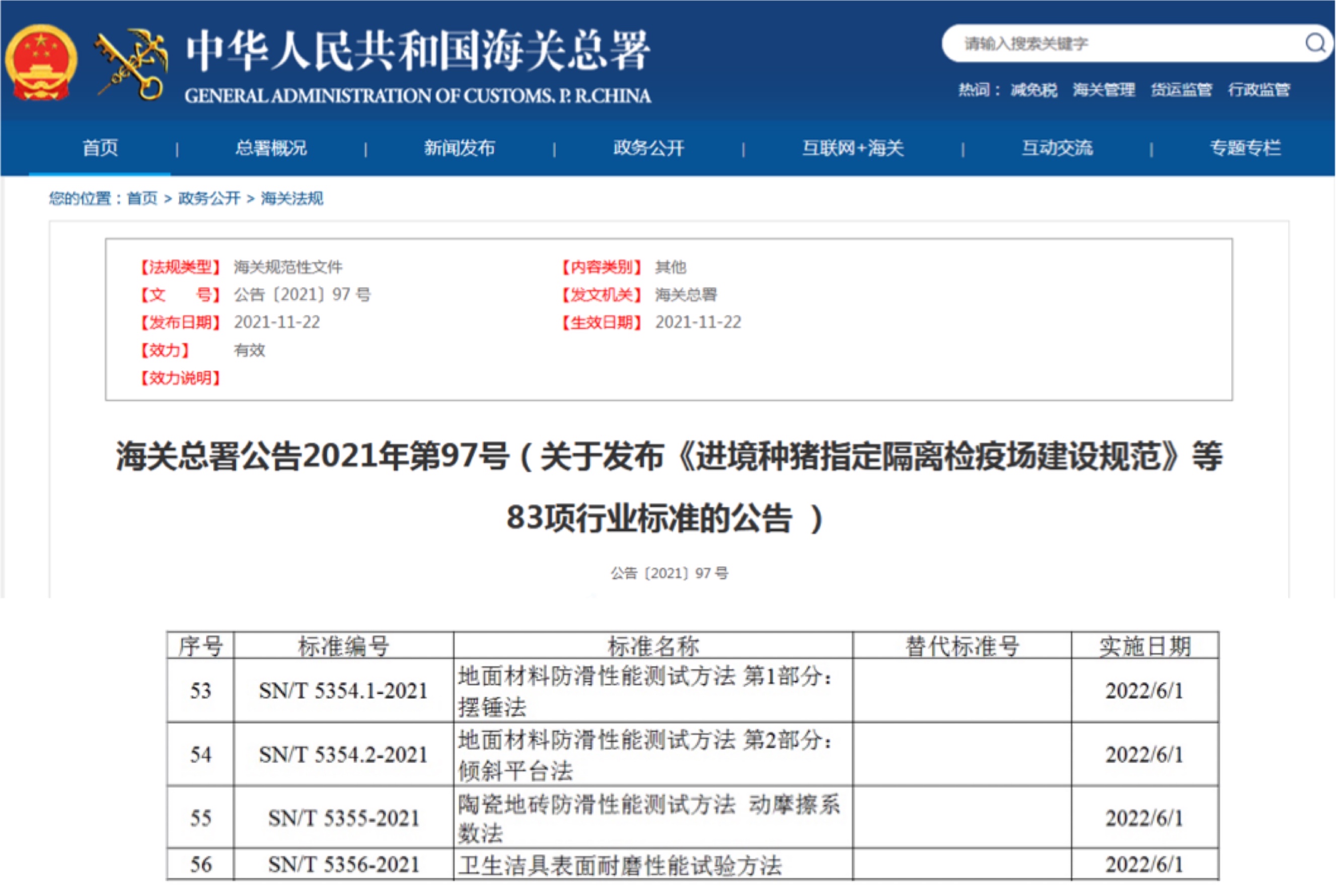 中國(guó)質(zhì)量新聞網(wǎng)訊 日前,海關(guān)總署發(fā)布2021年第97號(hào)公告(關(guān)于發(fā)布《進(jìn)境種豬指定隔離檢疫場(chǎng)建設(shè)規(guī)范》等83項(xiàng)行業(yè)標(biāo)準(zhǔn)的公告)。