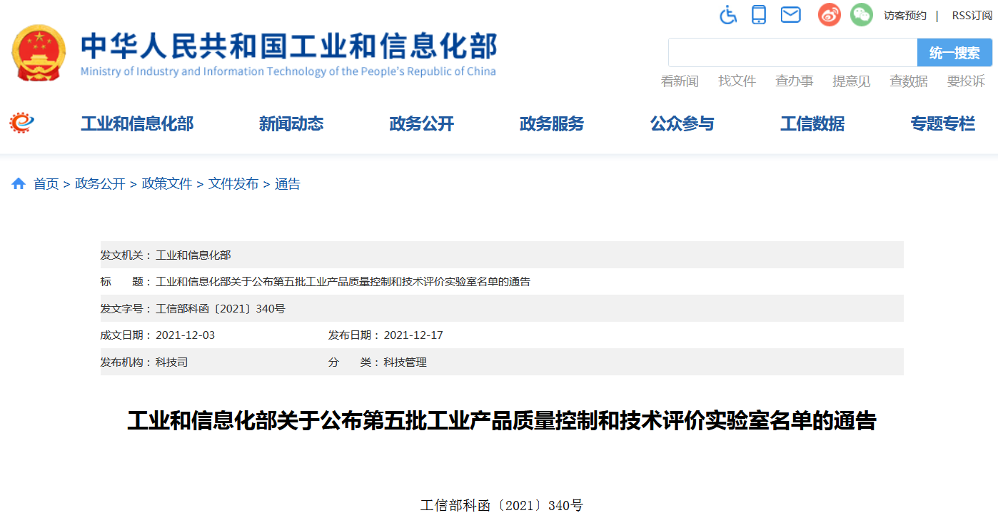 中國質(zhì)量新聞網(wǎng)訊 近日,工業(yè)和信息化部公布《第五批工業(yè)產(chǎn)品質(zhì)量控制和技術(shù)評價實驗室名單的通告》。