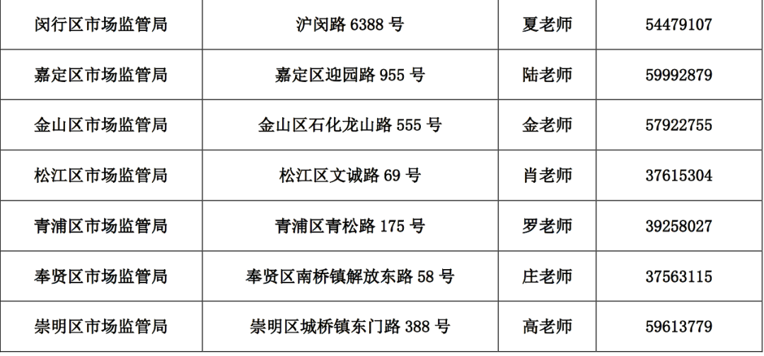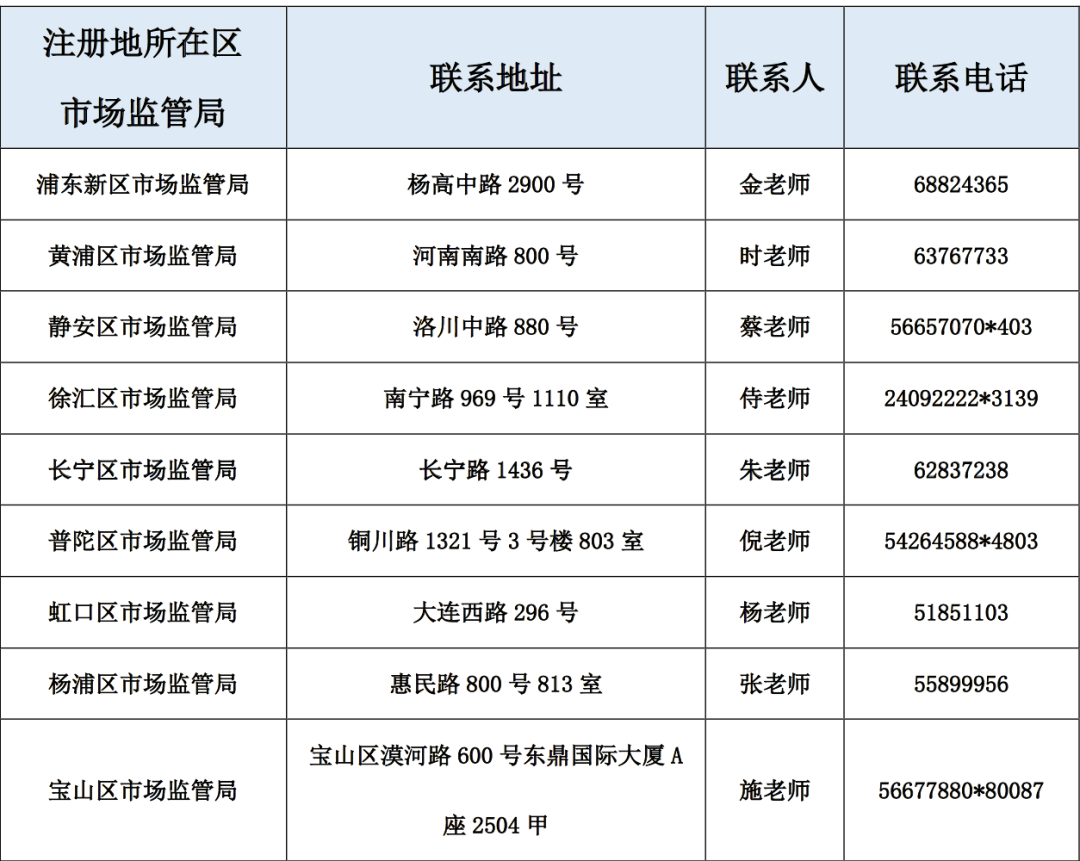 5.申報單位完成網上申報后,下載并打印申報材料(一式兩份需簽字蓋章),于2022年6月30日前將紙質材料提交至注冊地所在區(qū)市場監(jiān)督管理局進行預審(各區(qū)聯(lián)系方式見下表)。