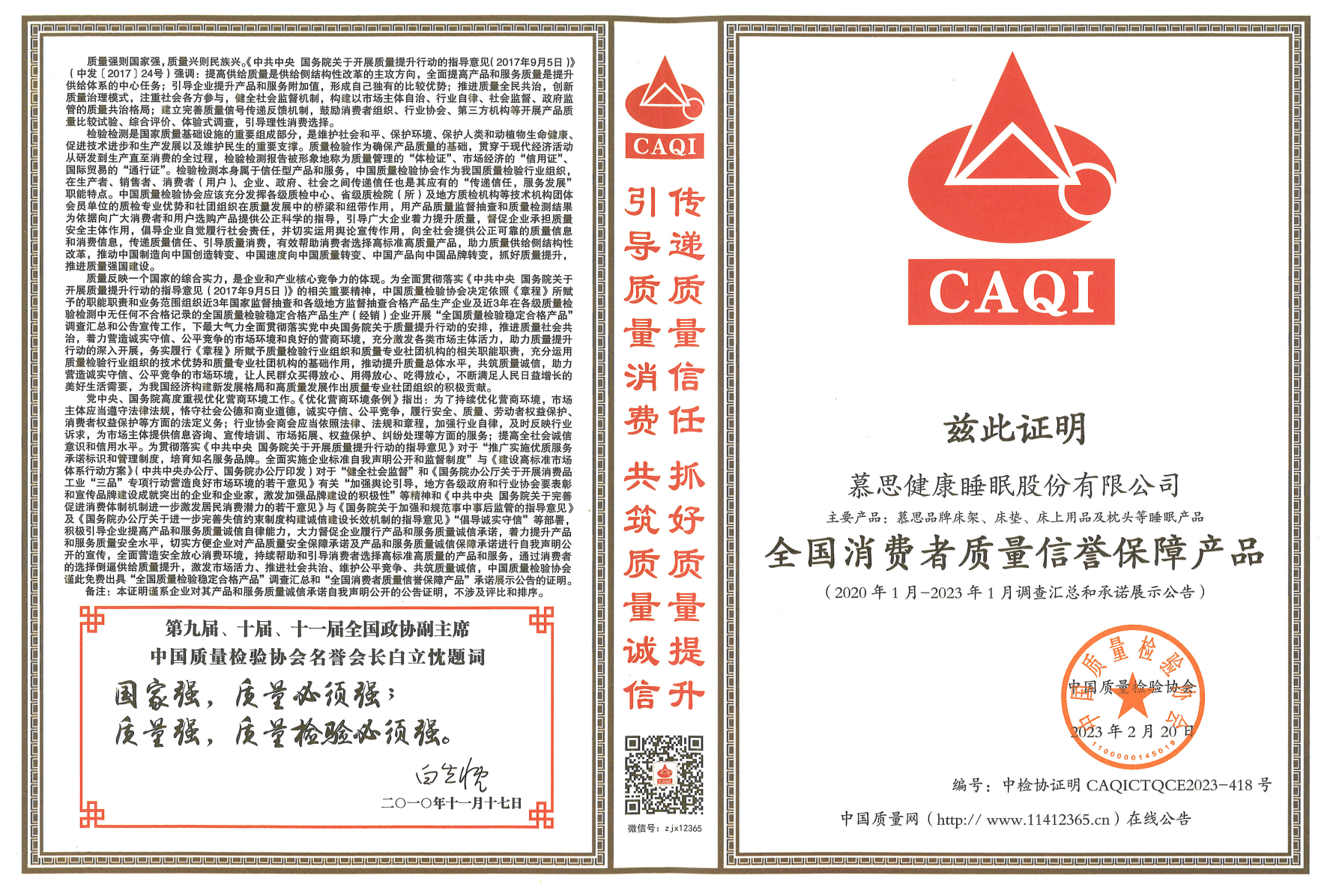 以質(zhì)量為本,為消費(fèi)者培育健康理性的質(zhì)量消費(fèi)文化,讓質(zhì)量的“溫度”轉(zhuǎn)化為消費(fèi)者幸福生活的“質(zhì)感”,慕思一直在勇毅拓路前行,為質(zhì)量強(qiáng)國(guó)建設(shè)貢獻(xiàn)力量。