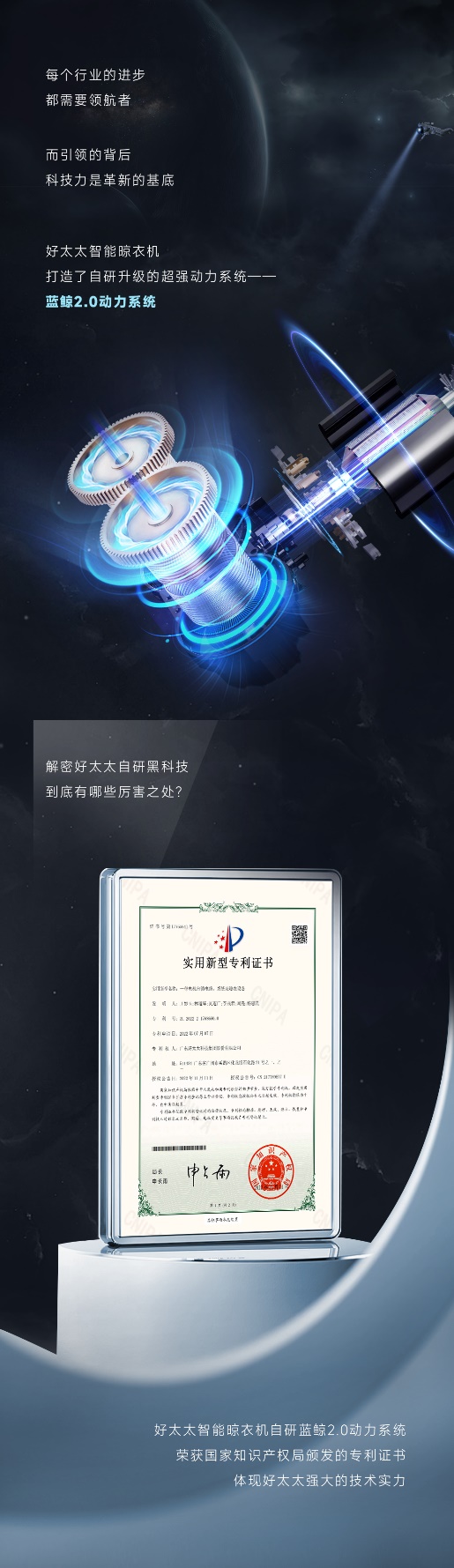 好太太智能晾衣機(jī)自研藍(lán)鯨2.0動力系統(tǒng)