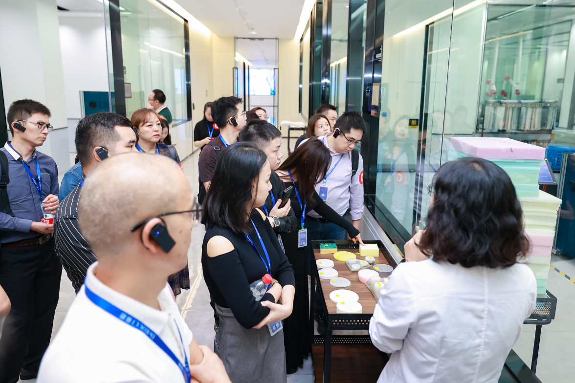 在生產(chǎn)環(huán)節(jié)之外,慕思集團(tuán)還向百位學(xué)員展示了CNAS實驗室。這是慕思產(chǎn)品的“試煉場”,見證每一款產(chǎn)品從原材料進(jìn)場到成品出場的嚴(yán)格質(zhì)量控制過程。在這里,每款產(chǎn)品都要經(jīng)過500多道質(zhì)量控制點的檢驗,從纖維含量檢測、起毛起球測試、床墊邊部耐久性測試等細(xì)節(jié),每一個環(huán)節(jié)都經(jīng)過“千錘百煉”。