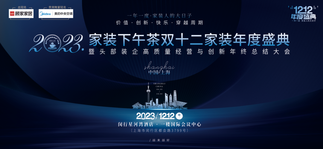 12月12日,家裝下午茶第九屆雙十二家裝年度盛典暨2023年頭部裝企高質量經營與創(chuàng)新年終總結大會,將在上海閔行星河灣酒店·一樓國際會議中心(閔行區(qū)都會路3799號)開幕。
