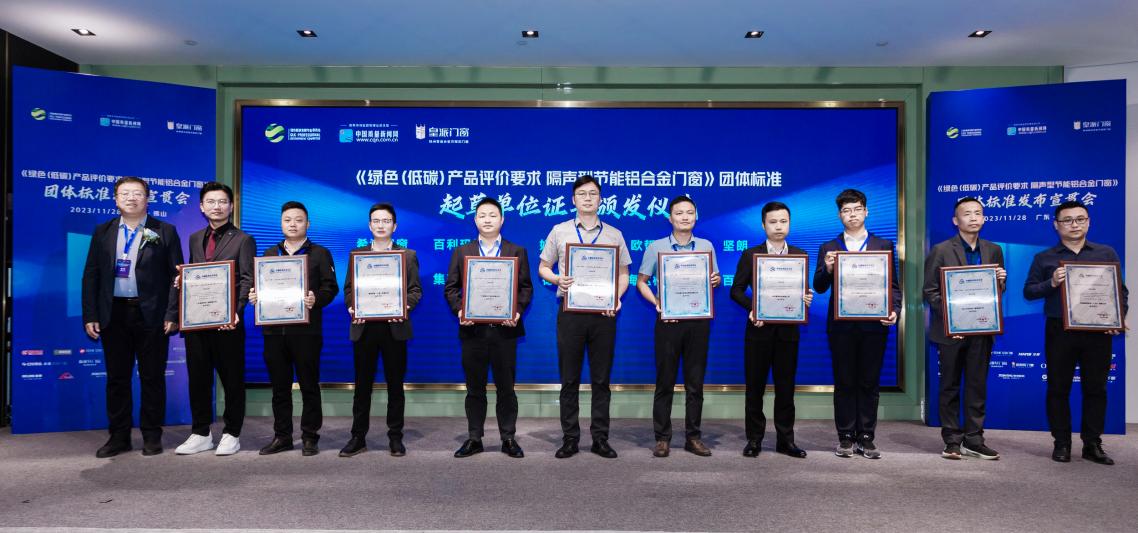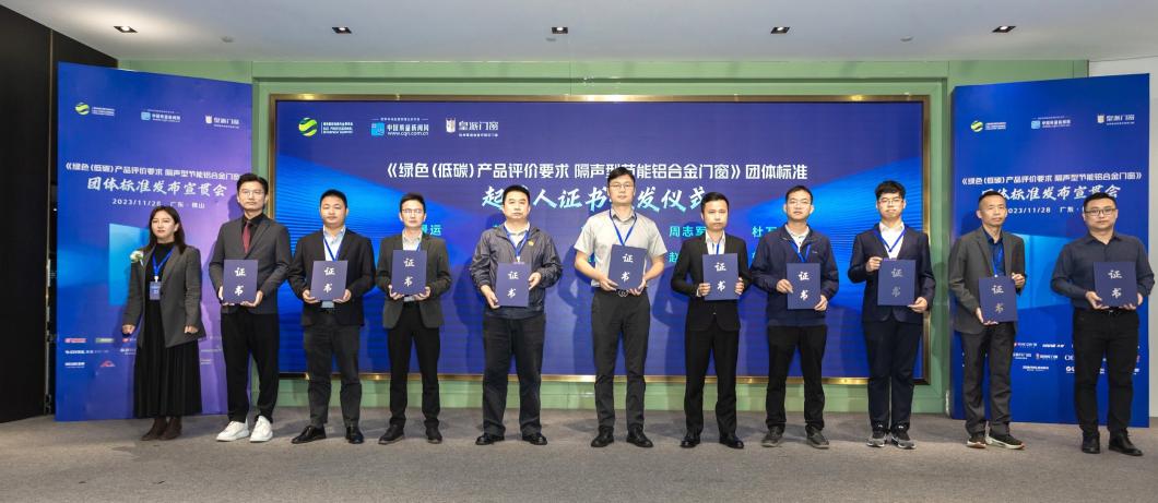 中國(guó)國(guó)際科技促進(jìn)會(huì)標(biāo)準(zhǔn)化工作委員會(huì)副主任周妍玥為團(tuán)體標(biāo)準(zhǔn)起草人頒發(fā)證書(shū),廣東皇派定制家居集團(tuán)股份有限公司、廣東高登鋁業(yè)有限公司、廣東新合鋁業(yè)有限公司、漢獅光動(dòng)科技(廣東)有限公司、廣東億合門窗科技有限公司、佛山市新豪軒智能家居科技有限公司等起草單位及相關(guān)起草人上臺(tái)接受證書(shū)。