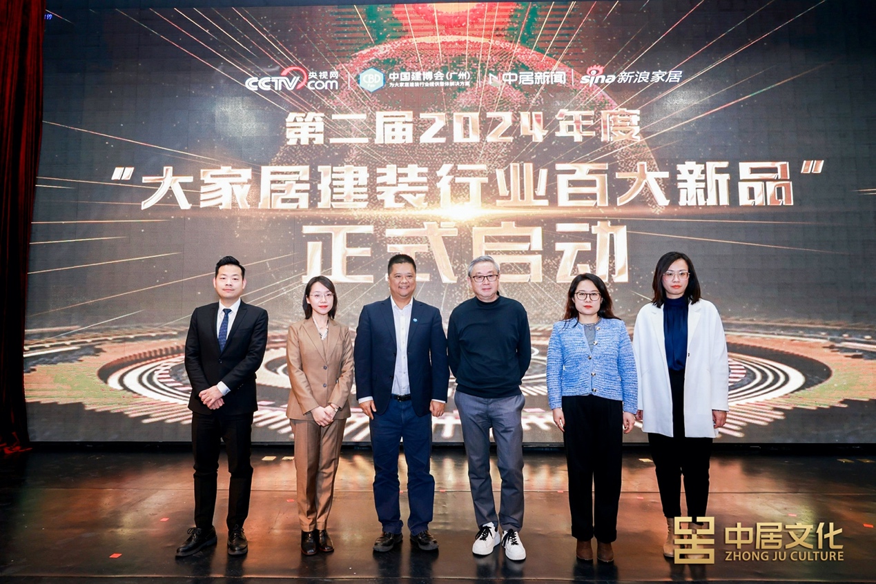 活動(dòng)現(xiàn)場(chǎng),中國(guó)建博會(huì)市場(chǎng)推廣負(fù)責(zé)人陳羿、央視網(wǎng)生活工作室負(fù)責(zé)人勾一茗、HC28品牌創(chuàng)始人厲建偉、南洋迪克總經(jīng)理王鑫、中居文化聯(lián)合創(chuàng)始人冀靜、中居文化合伙人劉萌共同上臺(tái),宣布2024年度“大家居建裝行業(yè)百大新品”啟動(dòng)。