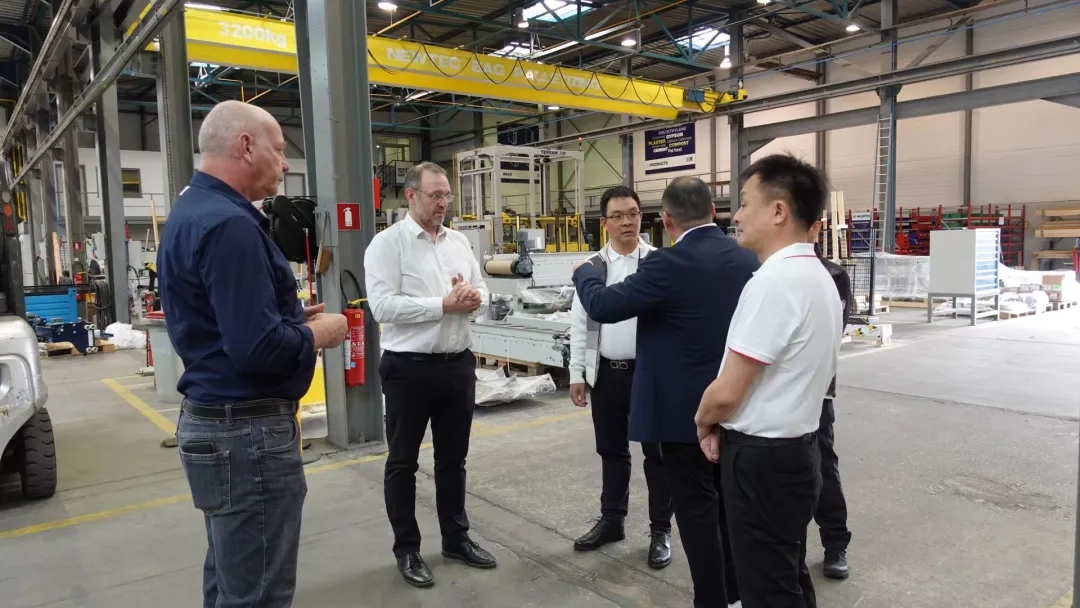 在參觀法國TEGRAL公司的建材生產(chǎn)線時,生態(tài)家園訪問團對TEGRAL的新材料生產(chǎn)技術(shù)和設(shè)備表示贊賞,并就生產(chǎn)設(shè)備、生產(chǎn)工藝等議題深入探討,并交流生產(chǎn)經(jīng)驗和管理策略。