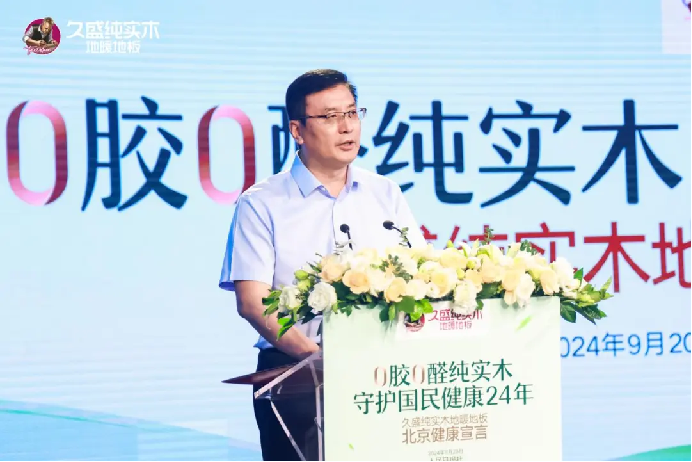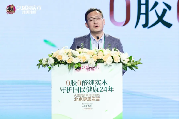 中國(guó)林產(chǎn)工業(yè)協(xié)會(huì)副秘書長(zhǎng)、北京林業(yè)大學(xué)副教授任學(xué)勇在致辭中強(qiáng)調(diào)了純實(shí)木地暖地板的品類優(yōu)勢(shì),并肯定了久盛在該領(lǐng)域的地位。他表示,久盛在人民日?qǐng)?bào)社人民網(wǎng)1號(hào)演播廳,聚集了這么多行業(yè)內(nèi)外的大咖嘉賓,一起見證這場(chǎng)“健康宣言”,這種始終堅(jiān)守健康、為市場(chǎng)提供高品質(zhì)純實(shí)木地暖地板產(chǎn)品的做法,既是對(duì)消費(fèi)者健康承諾的踐行,也是企業(yè)自身責(zé)任與擔(dān)當(dāng)?shù)捏w現(xiàn)。純實(shí)木地暖地板是消費(fèi)者一步到位的健康選擇。他號(hào)召行業(yè)提供更多純實(shí)木產(chǎn)品,共同推動(dòng)地板行業(yè)的健康發(fā)展。