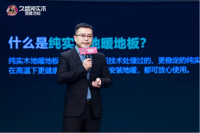 隨后,久盛地板有限公司營(yíng)銷總經(jīng)理李彭濤介紹了純實(shí)木地暖地板及其優(yōu)勢(shì),他表示,久盛在技術(shù)、原材、服務(wù)等方面始終處于行業(yè)重要地位,得到行業(yè)和消費(fèi)者的認(rèn)可。久盛不僅擁有強(qiáng)大、健康的實(shí)力守護(hù)好每個(gè)小家,多年來(lái)還積極承擔(dān)社會(huì)責(zé)任,以“愛木周”“億株珍貴樹”活動(dòng)等守護(hù)“大家”,推動(dòng)行業(yè)可持續(xù)發(fā)展,守護(hù)建設(shè)綠色家園。