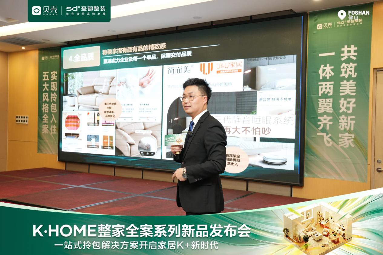 作為貝殼旗下直營整裝品牌,圣都整裝深耕家裝行業(yè)23年,始終以用戶需求為核心,致力于為消費(fèi)者提供高品質(zhì)、高效率的家裝服務(wù)。此次發(fā)布會,佛山圣都整裝針對佛山裝修市場的現(xiàn)狀與痛點(diǎn),推出全新的K·HOME整家全案系列,旨在為用戶提供一站式全案裝修解決方案,打造理想居住空間。