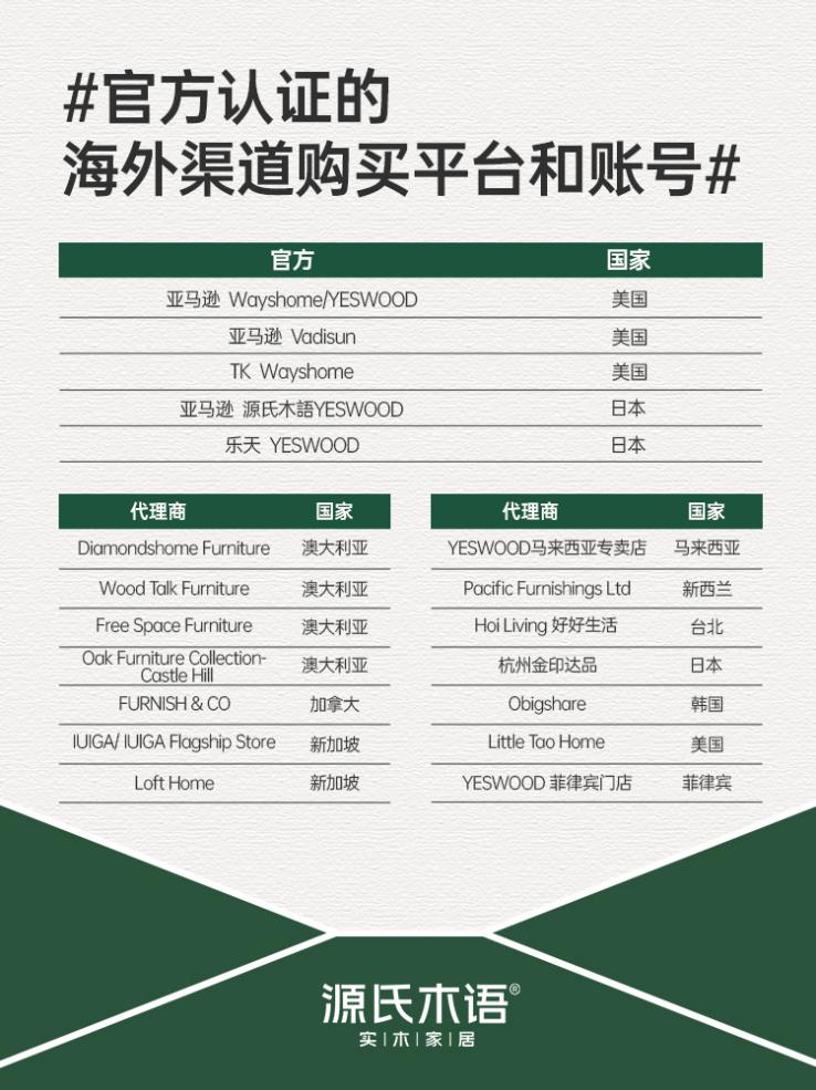 源氏木語品牌也向廣大消費者提醒:購買源氏木語產(chǎn)品時請認(rèn)準(zhǔn)線上線下認(rèn)證的店鋪,切勿輕信非正規(guī)來源的信息和交易。確保所購產(chǎn)品為認(rèn)證的正品,避免購買到假冒產(chǎn)品,從而享受到源氏木語帶來的高品質(zhì)生活和優(yōu)質(zhì)服務(wù)。同時,源氏木語也鼓勵廣大消費者能夠積極舉報侵權(quán)行為,如發(fā)現(xiàn)海外假冒店鋪、假冒源氏木語員工名義的情況,可以第一時間發(fā)送相關(guān)信息至james.yin@yeswood.com進(jìn)行核實、舉報,經(jīng)核實舉報真實后,可通過“源氏木語實木家居”微信公眾號領(lǐng)取周邊禮品一份。