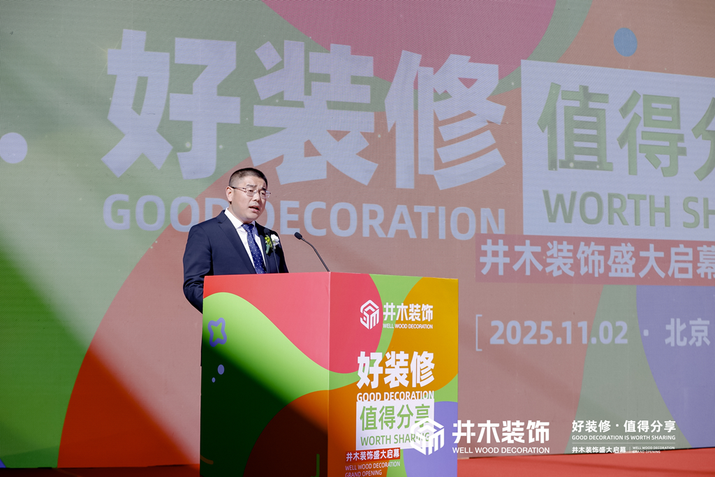 井木裝飾董事長(zhǎng)張軼登臺(tái),對(duì)到場(chǎng)的所有來賓表示衷心感謝,并深入闡述了品牌的核心理念?!案兄x每一位選擇在今天與我們共同開啟未來的朋友。井木的誕生,源于我們對(duì)當(dāng)下裝修市場(chǎng)痛點(diǎn)的深刻洞察,以及對(duì)于‘好裝修應(yīng)該是什么樣子’的重新思考?!彼f:“我們不做信息的壟斷者,而是做知識(shí)的普及者;我們不做方案的強(qiáng)硬推銷者,而是做需求的貼心滿足者。我們的‘模塊化交付,環(huán)扣作業(yè)’體系,確保了專業(yè)人干專業(yè)事,讓設(shè)計(jì)、施工、采購(gòu)、安裝像精密鐘表一樣無縫銜接。而每一位客戶,都將擁有一位專屬的‘服務(wù)總管’,進(jìn)行一對(duì)一的全程溝通與協(xié)調(diào)。我們的目標(biāo)只有一個(gè):讓裝修過程變得透明、高效,讓結(jié)果超越期待,最終讓每一位客戶都愿意主動(dòng)分享他們的裝修故事!”