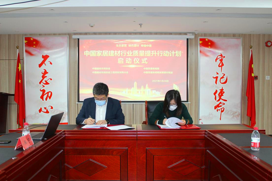 2021年1月26日,由中國建材市場協(xié)會、中國質(zhì)量新聞網(wǎng)主辦,中國質(zhì)量新聞網(wǎng)家居建材資訊、中國建材市場協(xié)會工程招標采購分會承辦的“中國家居建材行業(yè)質(zhì)量提升行動計劃”啟動儀式在京舉行。