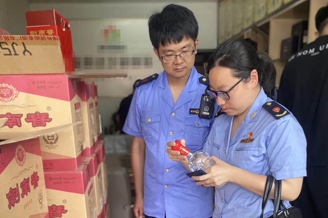 執(zhí)法人員扣押了假冒白酒,目前案件正在進一步調(diào)查中。