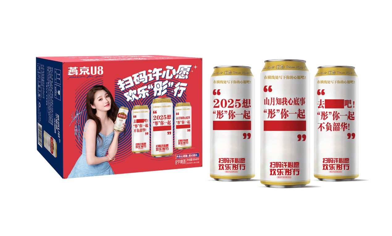 首先,產(chǎn)品即媒介,實(shí)現(xiàn)U8心愿罐的情感革命。繼“祝福罐”后,燕京啤酒再次推出U8心愿罐,將產(chǎn)品從消費(fèi)符號(hào)升級(jí)為情感載體。消費(fèi)者在罐身書寫心愿或寄語,通過社交媒體分享參與抽獎(jiǎng),讓產(chǎn)品成為表達(dá)情感的媒介。