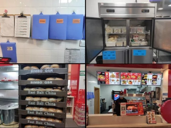 外賣箱擺放在食品處理區(qū)外固定位置,防止食品制作過程中出現(xiàn)交叉污染現(xiàn)象,且能保持整體環(huán)境干凈整潔