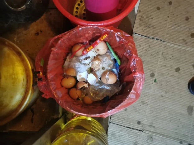 整改前:加工用具擺放雜亂,廚房衛(wèi)生臟亂差,垃圾桶未加蓋。