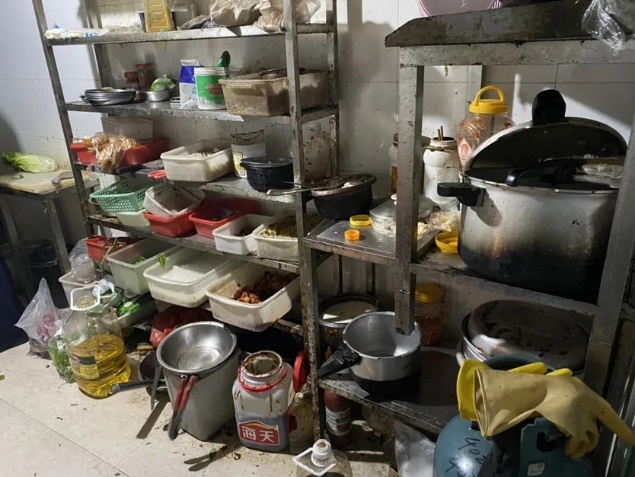 上榜理由:廚房衛(wèi)生臟亂差;工用具擺放雜亂。