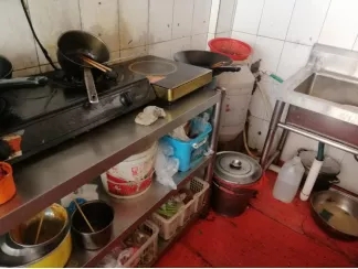 后廚臟亂差。