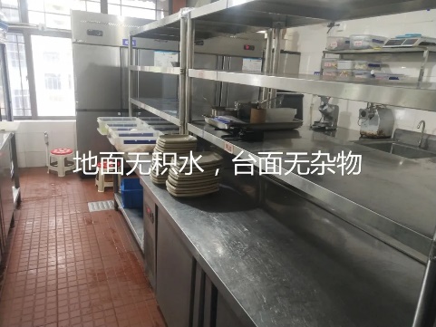 上榜理由:廚房干凈整潔,地面無(wú)積水,冰箱無(wú)積霜,證照齊全,貨品擺放整齊
