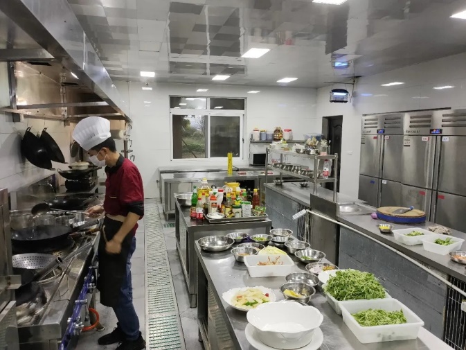 后廚衛(wèi)生干凈整潔,物品分類存放。清洗水池分類到位。“厲行節(jié)約、反對浪費”“公筷公勺”等文明宣傳到位。