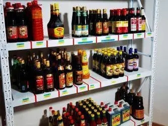 后廚干凈整潔,調(diào)味料擺放有序,食材分門別類擺放。