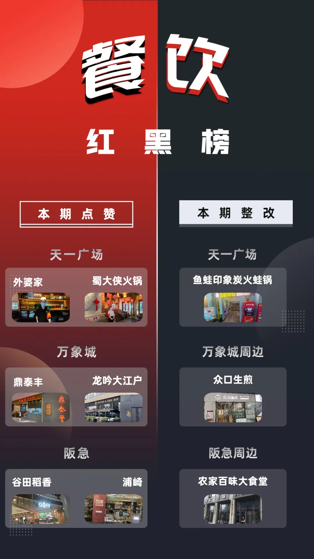 還記得我們【紅黑榜投票】第一期嗎?大家為海曙、江北、鄞州的廣場投票,最后天一廣場、萬象城、阪急成為了第一期投票的“幸運(yùn)兒”。