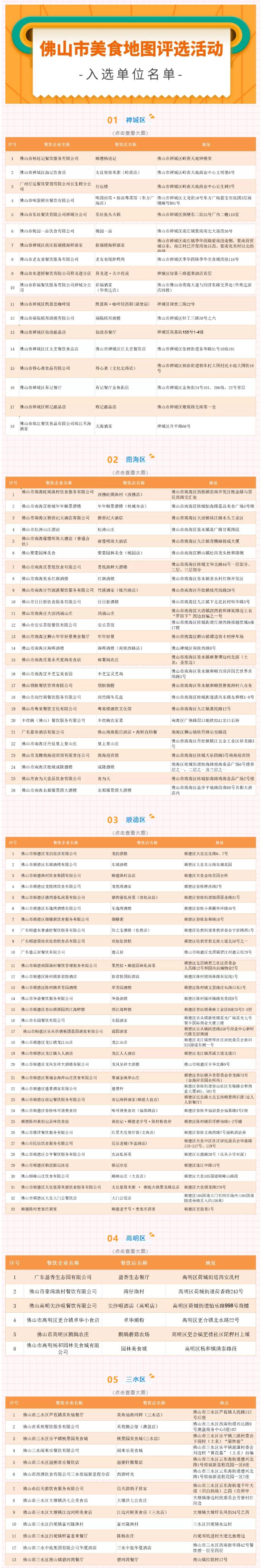 目前,廣東佛山正在創(chuàng)建國家食品安全示范城市。2021年9月-12月,“揾食佛山——全民美食官佛山尋味之旅”佛山市美食地圖評選活動全面開展,活動受到了市民的廣泛關注和參與,在全城掀起美食探店的熱潮。經網絡投票、線下考察、專家終評等環(huán)節(jié)的層層把關,最終佛山五區(qū)共96家餐飲店脫穎而出,正式上線“佛山陽光餐飲”APP,形成“揾食佛山”尋味指南,進一步擦亮了佛山“食品安全之城、嶺南美食之鄉(xiāng)”的名片。