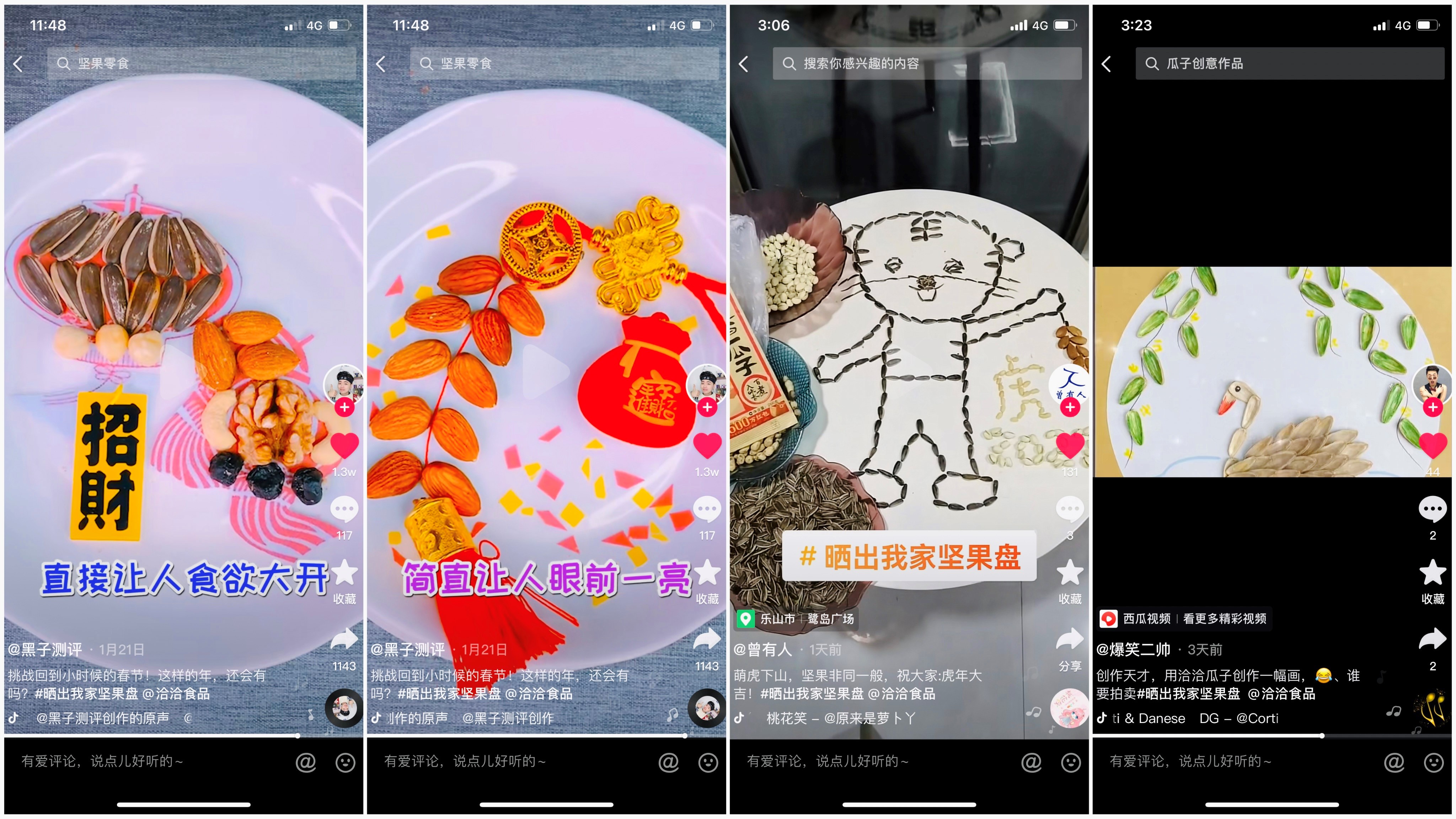盡管春節(jié)“家里蹲”,但也不妨礙大家各使“十八般瓜子拼圖武藝”。一把瓜子、一把堅(jiān)果,既滿(mǎn)足了舌尖的味蕾,亦為我們的平凡生活注入了“快樂(lè)的味道”。