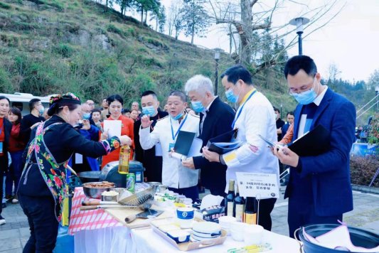 決賽現(xiàn)場,由中國旅游協(xié)會(huì)民宿客棧與精品酒店分會(huì)會(huì)長、唐人文旅智庫首席專家、唐鄉(xiāng)新鄉(xiāng)居生活社區(qū)創(chuàng)始人張曉軍,國家烹飪高級(jí)技師、國家烹飪名廚、中國烹飪協(xié)會(huì)名廚委員會(huì)委員王書發(fā),貴州旅游協(xié)會(huì)副會(huì)長、貴州旅游協(xié)會(huì)鄉(xiāng)村旅游與民宿發(fā)展分會(huì)會(huì)長吳比,貴州省餐飲行業(yè)商會(huì)秘書長褚炎明,中國烹飪名師、貴州省黔菜產(chǎn)業(yè)發(fā)展促進(jìn)會(huì)專家王旭,廣東省茂名市民宿協(xié)會(huì)會(huì)長林漢升組成的超強(qiáng)陣容評(píng)審團(tuán),在民宿主廚的介紹下品嘗了各色美味佳肴,并從現(xiàn)場食材展示、烹飪、民宿主人文化表達(dá)三個(gè)方面進(jìn)行了綜合評(píng)判打分。