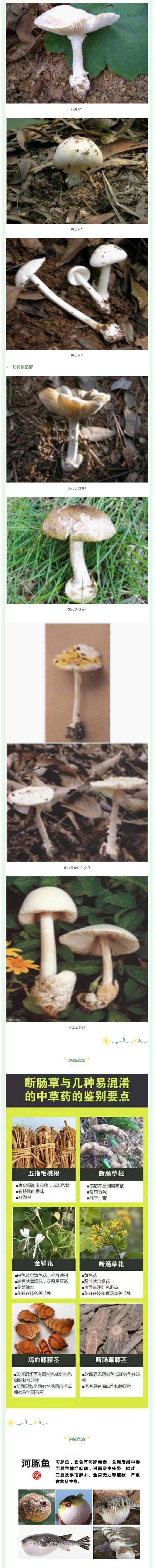 近期,廣東陸續(xù)有報道誤食野生毒蘑菇、斷腸草、河豚魚引起食物中毒及致死事件。食品安全無小事,市場監(jiān)管君提醒廣大群眾以及食品經(jīng)營單位提高警惕,謹(jǐn)防誤食誤售誤加工野生毒蘑菇、斷腸草、河豚魚等有毒動植物。